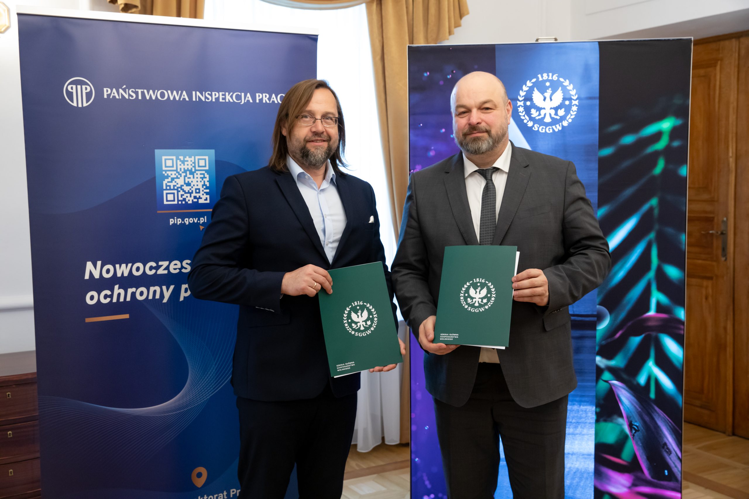 28.04.2026 r. w Szkole Głównej Gospodarstwa Wiejskiego w Warszawie podpisano porozumienie o współpracy pomiędzy SGGW a Państwową Inspekcją Pracy Głównym Inspektoratem Pracy. Dokument określa zasady wspólnych działań na rzecz rozwoju kompetencji studentów i absolwentów oraz upowszechniania wiedzy z zakresu prawa pracy i bezpieczeństwa pracy.