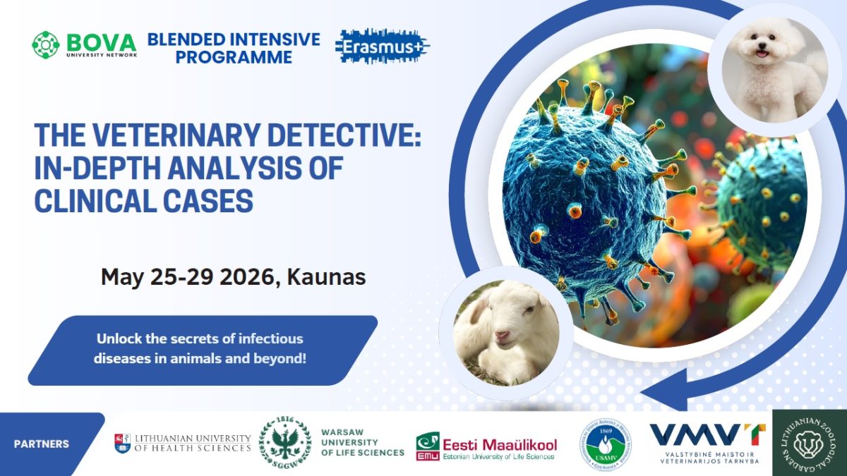 Zapraszamy do udziału w mobilności krótkoterminowej BIP organizowanej przez Lithuanian University of Health Sciences w terminie 25-29 maja 2026r. Oferta jest skierowana do studentów Medycyny Weterynaryjnej z odpowiednim przygotowaniem.