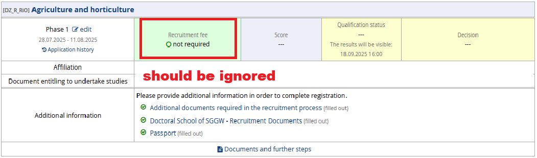Please do not rely on the information in your application accounts that the recruitment fee isn’t required, as this is an erroneous message (see example below). For technical reasons, it cannot be disabled.