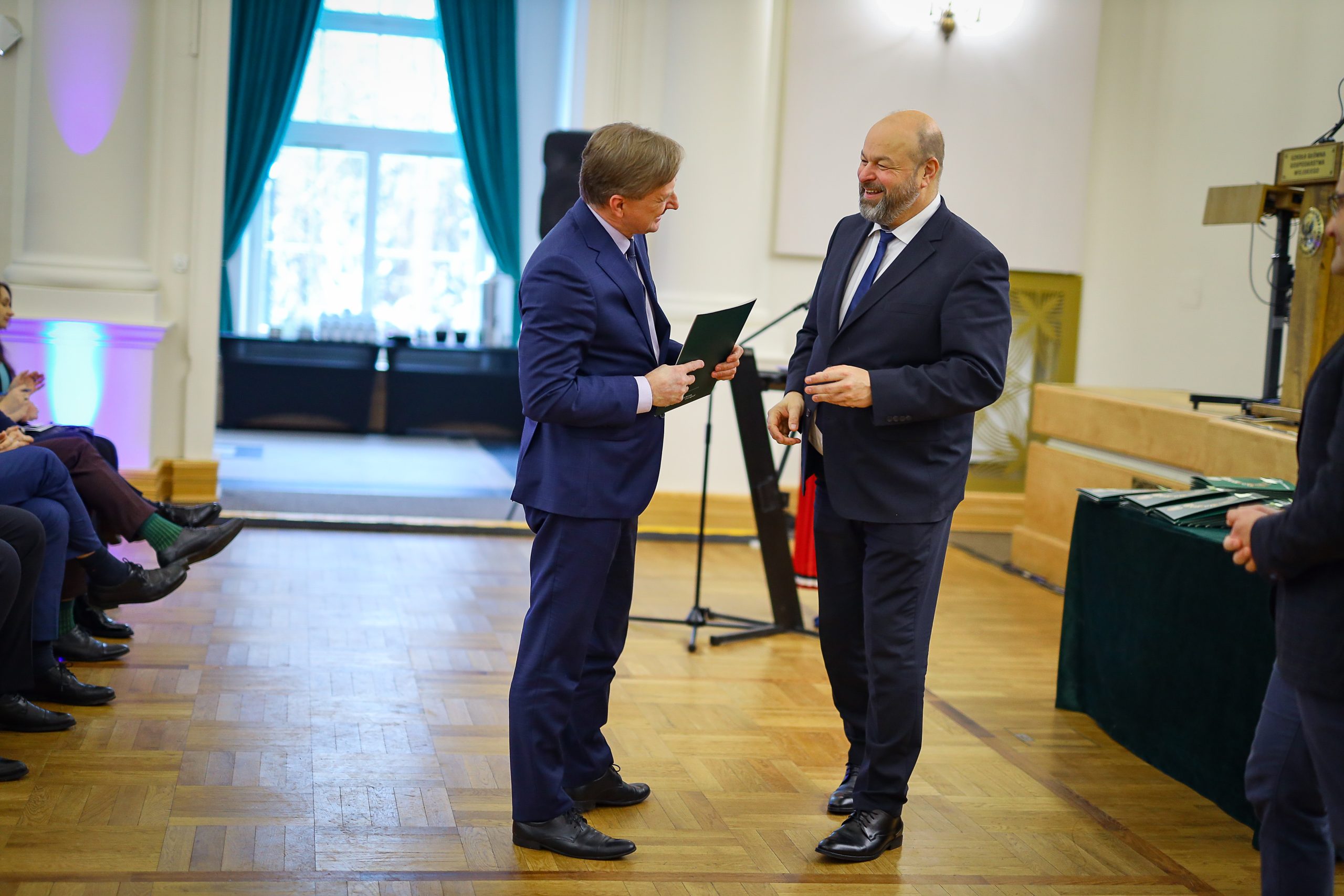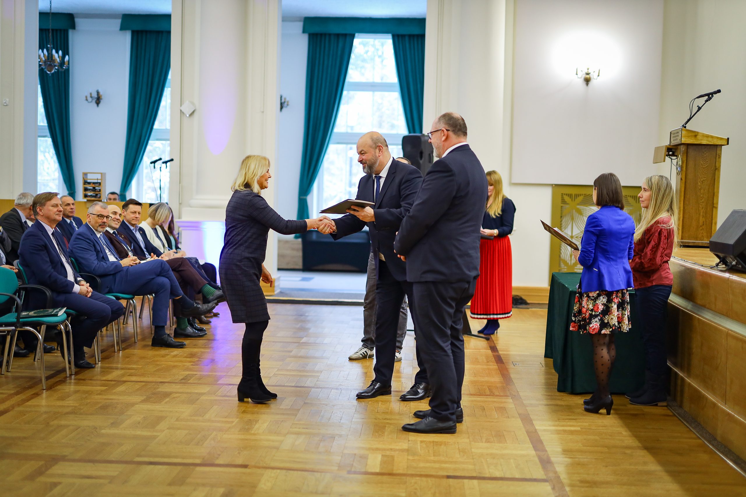 Spotkanie otworzył prof. dr hab. Michał Zasada, rektor SGGW, który w swoim wystąpieniu podziękował jubilatom za lojalność, wytrwałość i codzienną pracę na rzecz uczelni. Podkreślił, że doświadczenie oraz profesjonalizm pracowników stanowią fundament stabilnego rozwoju SGGW, a ich dorobek zawodowy ma trwały wpływ na jakość kształcenia, badań naukowych oraz funkcjonowanie uczelni jako nowoczesnego ośrodka akademickiego.