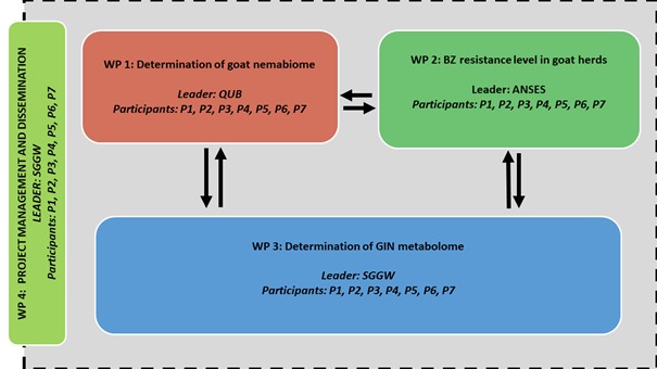 Cele badawcze obejmują: a) określenie wpływu czynników geograficznych i klimatycznych na metabolizm larw, b) identyfikację subtelnych różnic w profilach metabolomicznych związanych ze zmianami w składzie gatunkowym nicieni żołądkowo-jelitowych, c) wyodrębnienie zestawu metabolitów umożliwiających precyzyjne rozróżnienie larw podatnych i opornych na benzimidazole, d) uzyskanie danych potwierdzających, że metabolomika może być szybką i praktyczną metodą diagnozowania oporności leki przeciwrobacze, e) upowszechnienie wiedzy, wdrożenie nowych metod oraz szkolenia w zakresie diagnostyki oporności na leki przeciwrobacze w krajach, gdzie wcześniej nie stosowano takich metod, f) zebranie danych dotyczących rozpowszechnienia oporności na leki z grupy benzimidazol w stadach kóz w regionach, gdzie dane do tej pory nie były dostępne (Estonia, Łotwa) lub były ograniczone (Turcja), g) zebranie szczegółowych danych na temat składu gatunkowego i interakcji populacji nicieni żołądkowo-jelitowych u kóz w różnych regionach klimatycznych Europy.