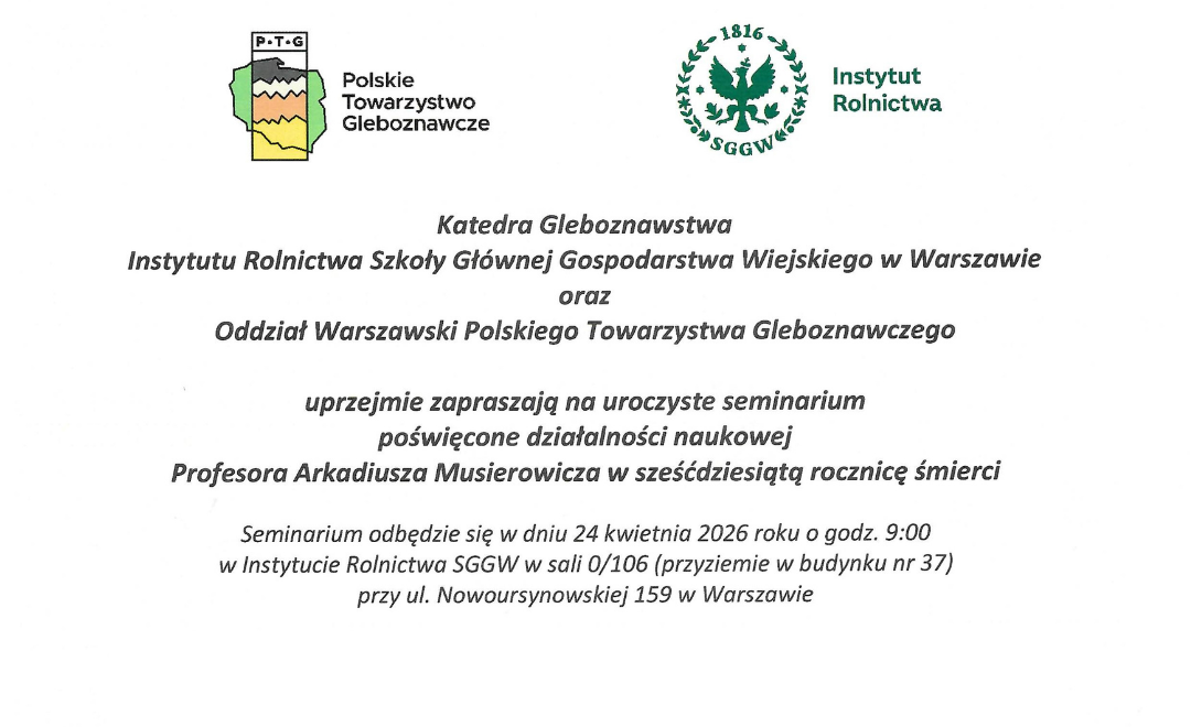 Seminarium odbędzie się w dniu 24 kwietnia 2026 roku (piątek) o godz. 9:00 w sali 0/106 w Instytucie Rolnictwa SGGW (budynku nr 37).