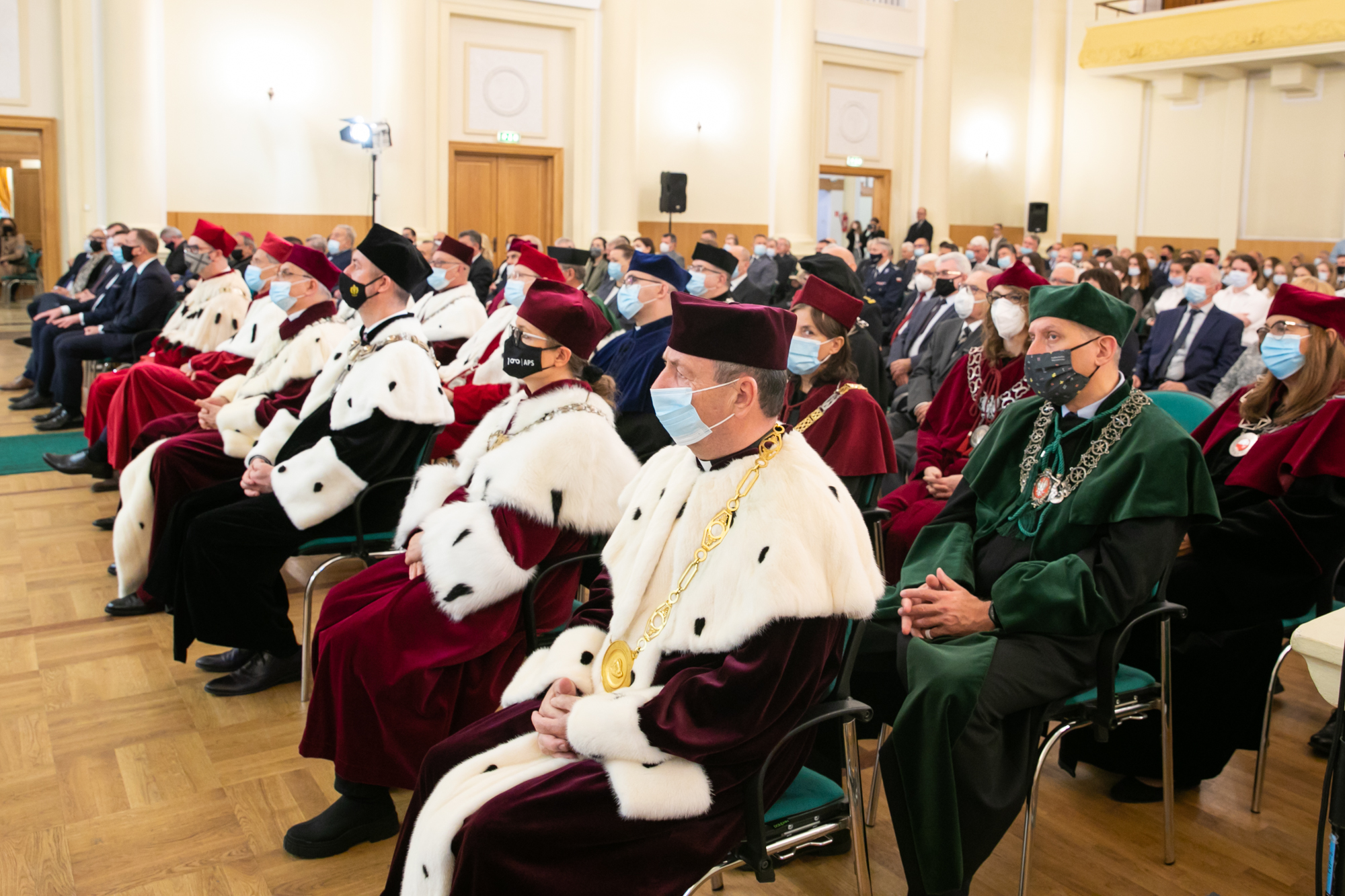 Rektor Michał Zasada mówił także o wyzwaniach, które w ostatnim czasie miała przed sobą Uczelnia – z powodu pandemii zostały wdrożone nowoczesne narzędzia do prowadzenia nauczania zdalnego. Stworzony został kanał SGGW Science, na którym naukowcy SGGW publikowali, cieszące się dużym zainteresowaniem nie tylko wśród studentów SGGW, wykłady i ćwiczenia. Rektor SGGW przypomniał także wiele inicjatyw, które Uczelnia podjęła i które z pewnością będą sprzyjać jej rozwojowi i prowadzeniu nowatorskich prac badawczo-rozwojowych nie tylko w zakresie szeroko rozumianych nauk rolniczych, ale również nauk ścisłych, przyrodniczych, społecznych i inżynieryjno-technicznych.